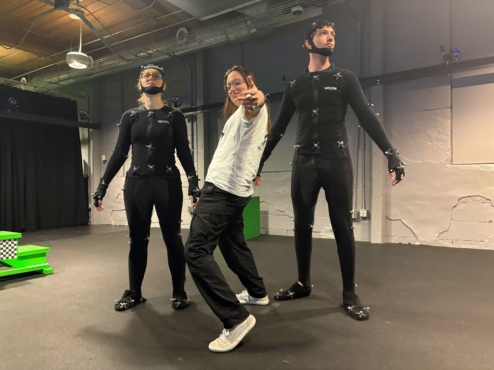 For my Motion Capture class, I have been in the suit for many sessions and got this silly picture with some of my friends